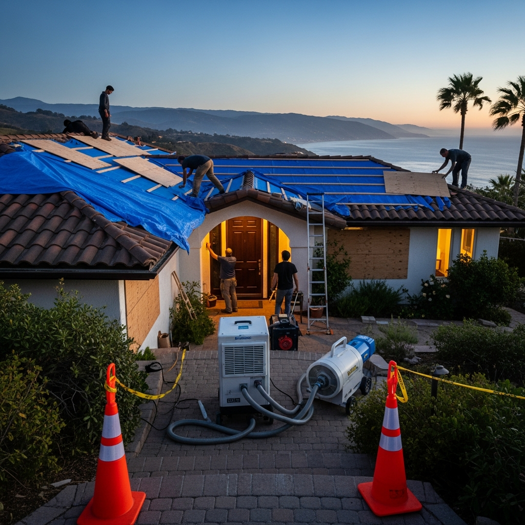 Board-up and tarping are the visible signatures of an organized emergency response. Openings that once held windows and doors are secured to keep weather and wildlife out, and roofs are covered to prevent rain or marine layer moisture from entering. In Malibu, tile roofs are common, and walking them without causing breakage demands specialized methods and soft-footing systems. Equally important is perimeter control—temporary fencing if needed—to deter trespassing during vulnerable hours. A secure site allows crews to focus on stabilization without distraction and offers you peace of mind in a moment when so much feels uncertain.